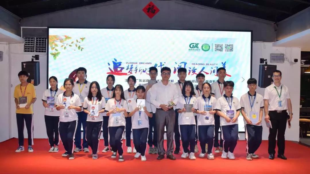 廣州市作家協(xié)會副主席、書香羊城全民閱讀推廣大使黃金來,花都讀書會書友到場見證,花都讀書會發(fā)起人、花都朗誦協(xié)會副會長江永強和廣東省高新技術(shù)技工學(xué)校文建友副校長、梅啟亨副校長、校長助理王磊等50位中高層教職工列席,一同參與學(xué)習(xí)的還有高新技校300名師生。