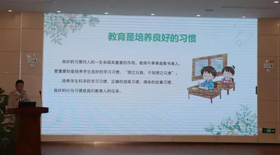 隨后,張校長還做了精彩的教育講座,他認為教育是一種期待、一種固守、一種耐心、一份信任、一份寬容。教育是培養良好的習慣,教育是一種服務。