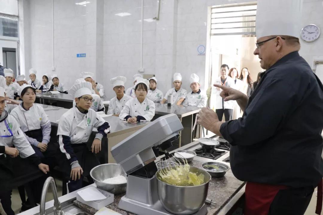 12日上午,包括澳大利亞政府貿(mào)易投資委員會(huì)商務(wù)官員周覓瓊、EHI校長Mr.Stuart、首席運(yùn)營官M(fèi)s.Bubpa、亞洲區(qū)域市場經(jīng)理周敏怡、中國項(xiàng)目經(jīng)理歐陽云在內(nèi)的一行來賓便早早抵達(dá)我校,在我校領(lǐng)導(dǎo)及老師的陪同下參觀了烹飪專業(yè)各大實(shí)訓(xùn)室。