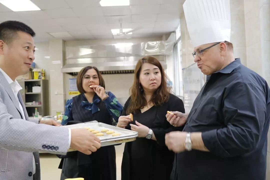 參觀過程中,來賓們對我校中餐烹調(diào)及面點(diǎn)制作課堂表現(xiàn)出強(qiáng)烈的興趣,Mr.Stuart表示,這樣的課堂氛圍非常好,學(xué)生以小組為單位,大家相互協(xié)作,凝結(jié)智慧,制作出的作品都是獨(dú)一無二的。