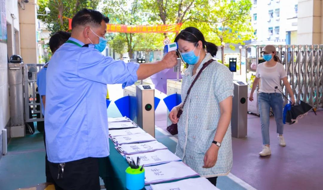 15:00,學(xué)生處保衛(wèi)科全體保安人員上崗,安排看守學(xué)校各個大門,在篩查工作完成前禁止師生外出學(xué)校,以及暫不接受探訪,進入校園的教職工、家屬等須佩戴口罩、提供粵康碼,接受詳實登記和體溫檢測;對從校園外運輸入校園的物資,采取酒精噴灑式消毒處置措施。