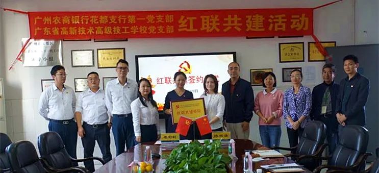 為進一步加強我校黨組織建設,提升新形勢下黨支部工作成效,實現黨建優勢互補,我校黨支部與廣州農商銀行花都支行第一黨支部舉行“紅聯共建”簽約儀式,開展黨建共建活動。