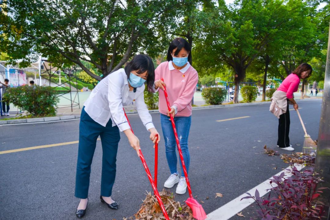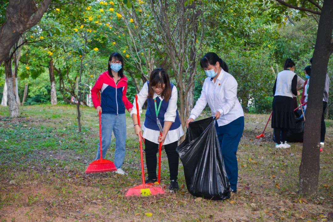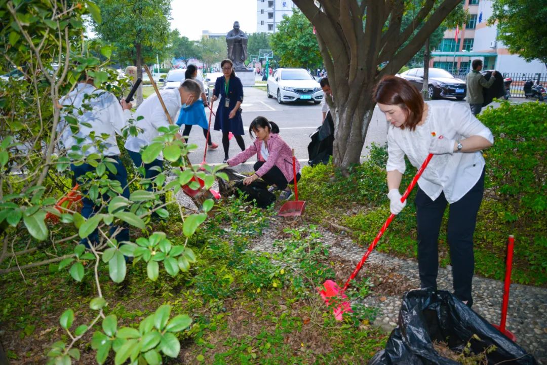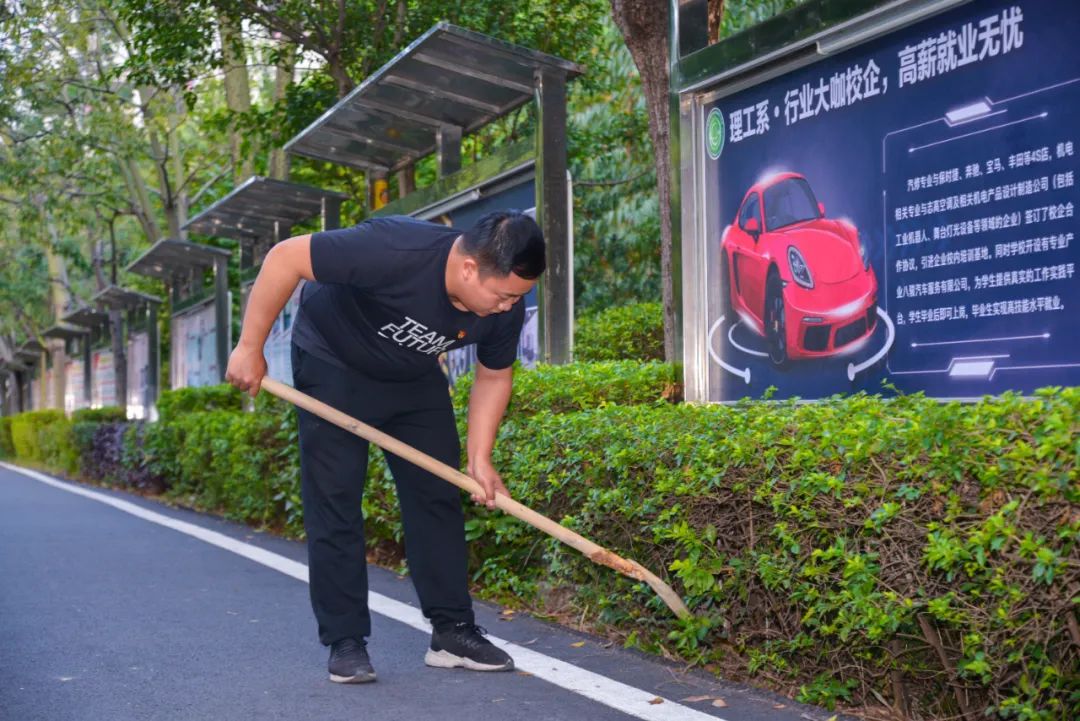 簽約儀式結束后,兩個黨支部全體黨員分成4個小組,聯合開展校園衛生清潔活動。